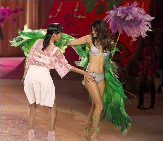 2.5 milyon dolarlık sütyenle sahneye çıkan Alessandra Ambrosio, 2 çocuk doğuran Adriana Lima, yeni doğum yapan Avustralyalı güzel Miranda Kerr ve Lindsay Ellingson, Hilary Rhoda, Bregje Heinen Erin Heatharton, Candice Swanapoel gibi isimlerin podyuma çıktığı defilede melekler unutulmaz bir şov sergiledi.
