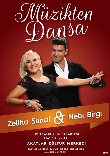 Türkiye’nin önde gelen şov kadınlarından pop müzik sanatçısı Zeliha Sunal, Türkiye'de çeşitli müzikaller sahneye koymuş; Avrupa'nın en iyi erkek sesi seçilen ve Afife Jale Tiyatro ödüllü genç sanatçı Nebi Birgi ile sıradışı bir performansa imza atıyor. Operadan müzikale, nostaljiden günümüze uzanan bir repertuarla yabancı şarkıların Türkçe şarkılarla harmanlandığı, Zeliha Sunal’ın tabiriyle ‘öpüştüğü’ Müzikten Dansa adlı gösteri, 12 Aralık Pazartesi günü Beşiktaş Belediyesi Akatlar Kültür Merkezi’nde sergilenecek.